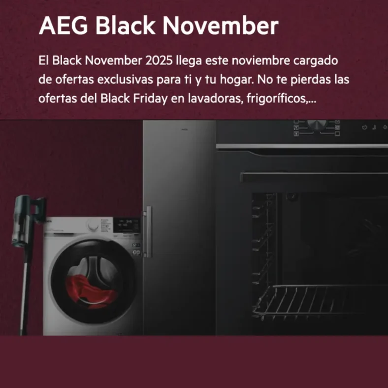 🖤 ¡El Black November 2025 de AEG ya está aquí! Este mes llega cargado de ofertas exclusivas para ti y tu hogar, con descuentos irresistibles en lavadoras, frigoríficos, congeladores, lavavajillas y muchos más electrodomésticos diseñados para hacerte la vida más fácil. ⚡🏠