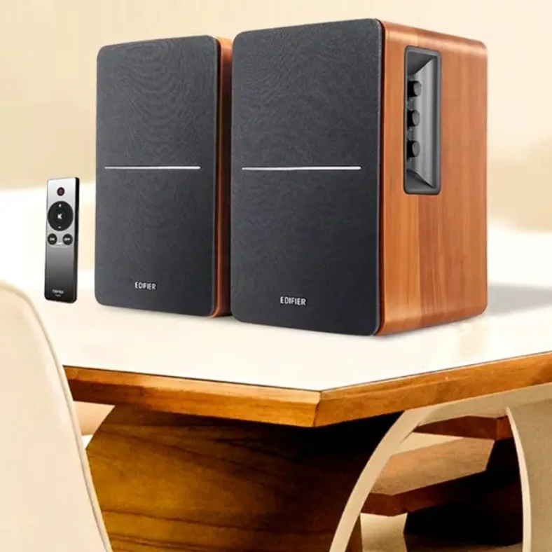 Los altavoces de estantería Edifier R1280T se distinguen por su capacidad de conexión dual simultánea, facilitada mediante cables RCA, y su control remoto para un manejo más versátil. Ofrecen 42W de potencia continua sin distorsión, con un tweeter y subwoofer optimizados para garantizar un sonido claro y detallado. Su diseño incluye un puerto sub-out adicional, lo que permite una expansión acústica para mejorar la experiencia auditiva. .
