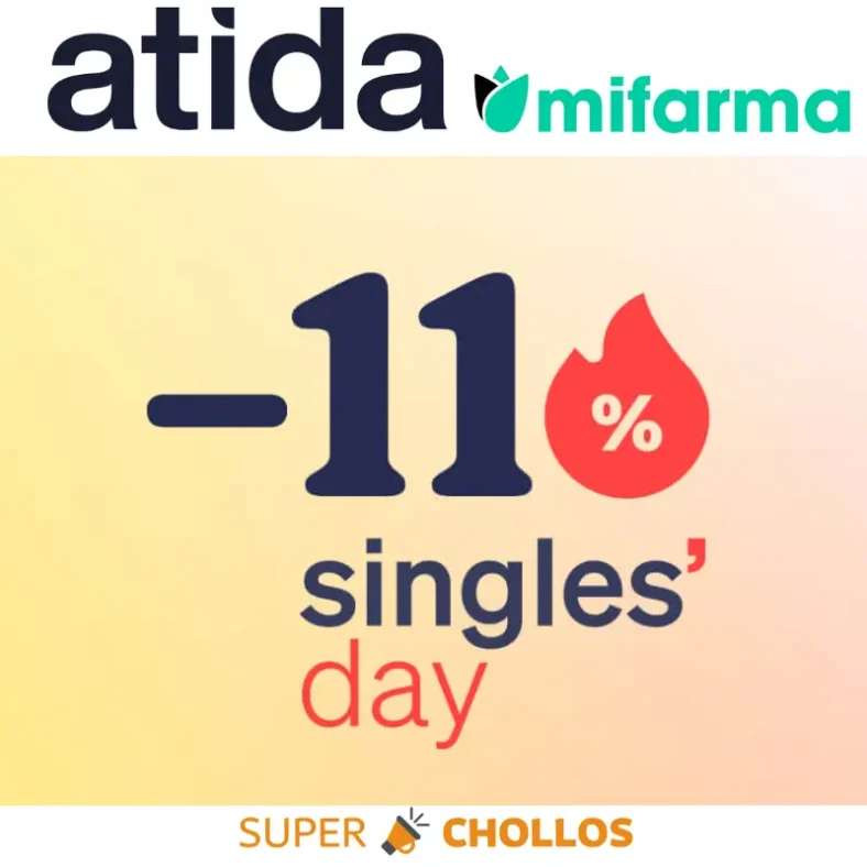 Inicio - SALUD - 11.11 Atida MiFarma: ¡Cupón 11% DTO. EXTRA! Caducado11.11 Atida MiFarma: ¡Cupón 11% DTO. EXTRA! 10/11/2025 SALUD, BELLEZAAtida MifarmaGuardarGuardarEliminar 0 Puntuación+65 0 100 VER TODAS LAS OFERTAS 11EXTRA Puntuación+65 VER TODAS LAS OFERTAS 11EXTRA ¡Solo hoy, celebra Singles’ Day!Usa el código promocional 11EXTRA y obtén un 11% de descuento exclusivo en todos los productos con etiqueta “SINGLES’ DAY”. ¡Aprovecha antes de que se termine!