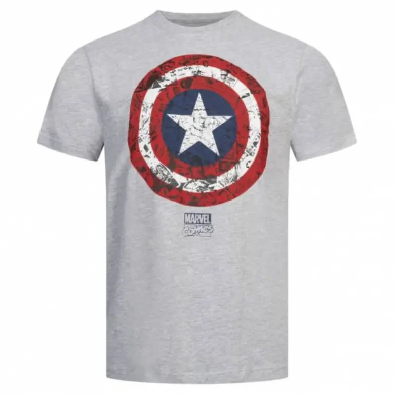La camiseta inspirada en el Capitán América de Marvel combina estilo y confort para los verdaderos fanáticos del universo superheroico. Está confeccionada en un 93% algodón y 7% poliéster, lo que garantiza una sensación suave al tacto y una excelente transpirabilidad, ideal para el uso diario. 👕