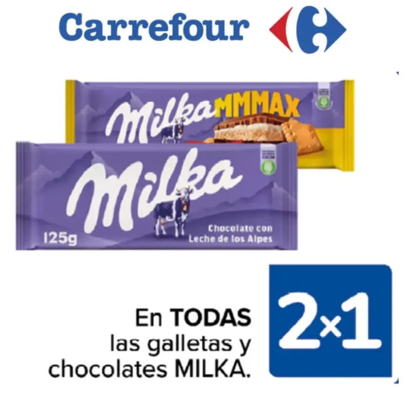 Añade los dos productos Milka que más te apetezcan y cuando vayas a realizar el pedido se te añadirá el saldo a tu Cheque Ahorro de el de menor valor. ¡Así de fácil te lo pone Carrefour!