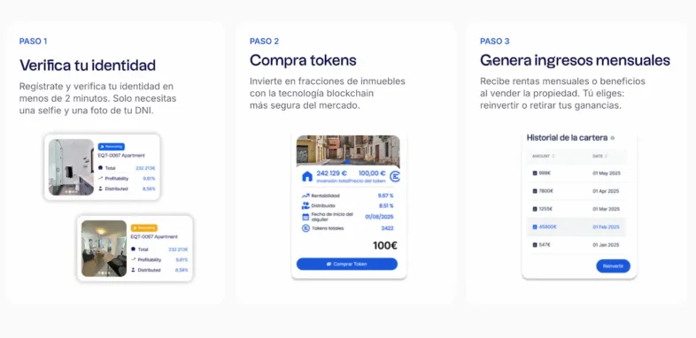 - Los proyectos se dividen en “tokens”, y al comprar estos tokens, adquieres una parte proporcional de la inversión (y de las ganancias 🔥).