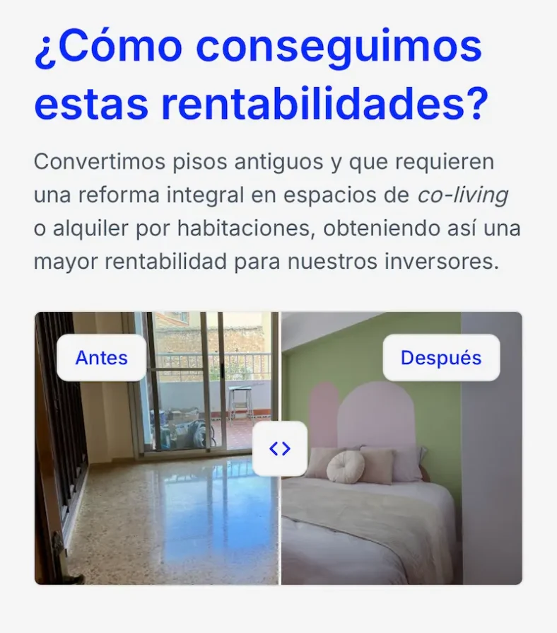 - Ejemplo real: si inviertes 1.000 €, puedes recibir cerca de 70€ solo como bono de bienvenida y unos 7-8 € mensuales de ingresos de alquiler, más la posible plusvalía cuando se venda el inmueble.
