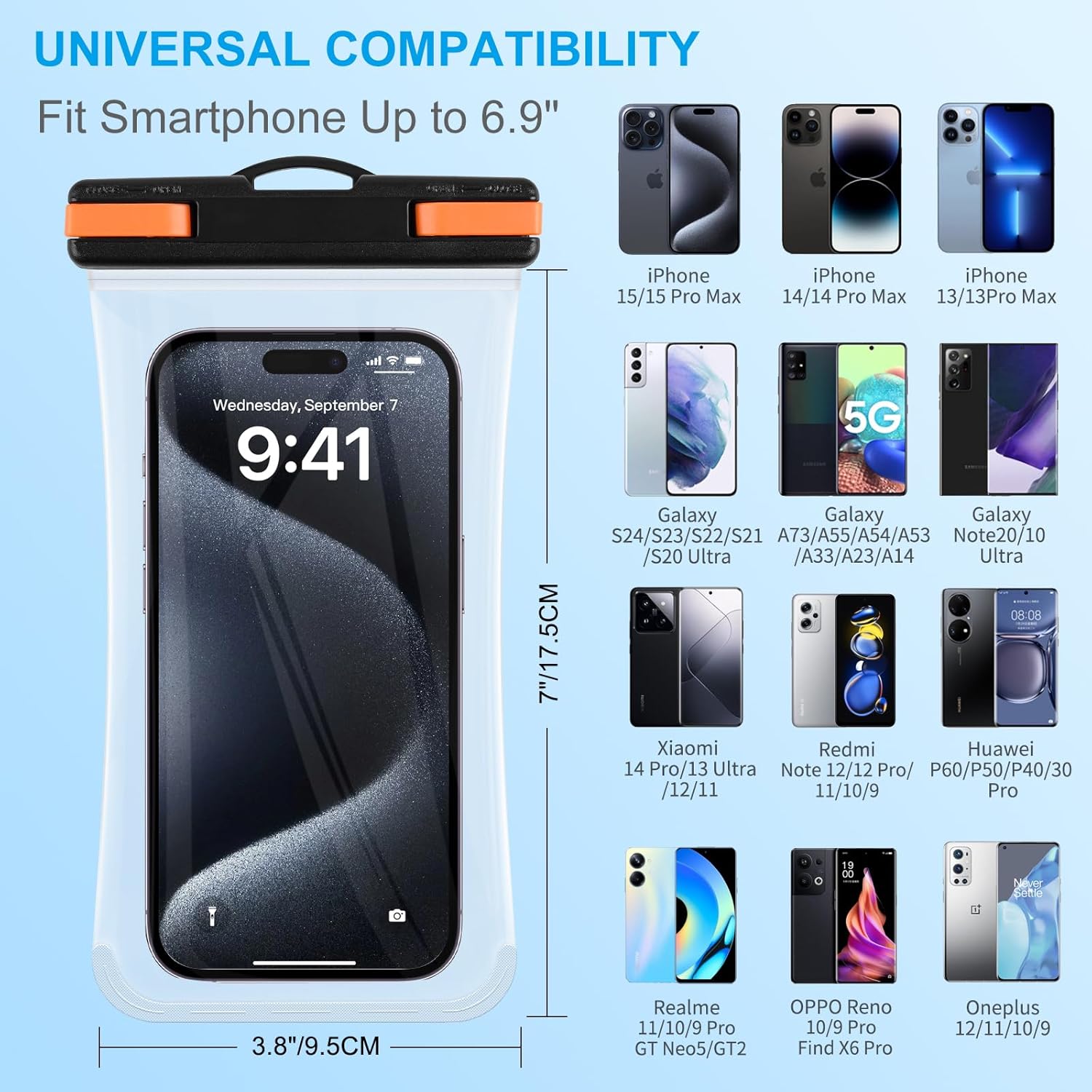 📱Compatible universalmente, hasta teléfonos de 6,9 pulgadas.