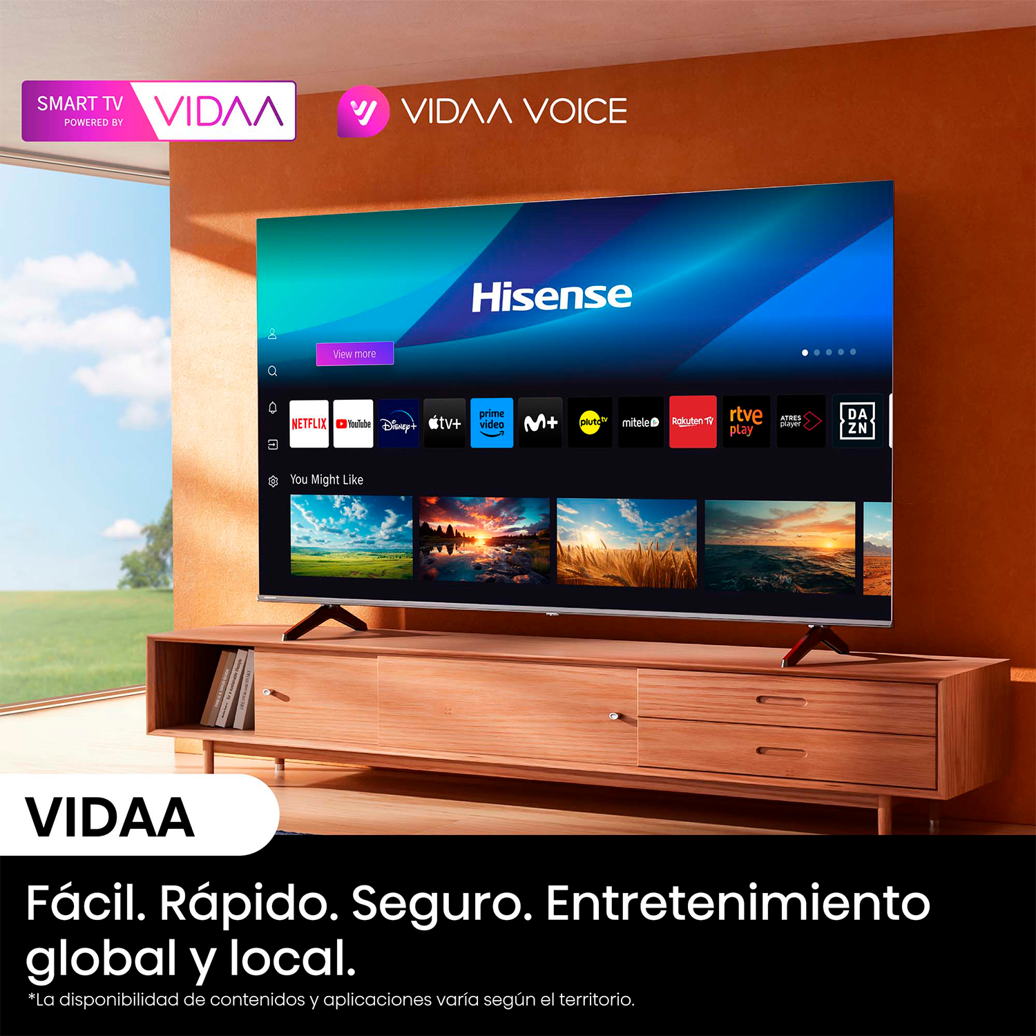 El televisor ajusta automáticamente la iluminación según las condiciones del entorno, asegurando que cada escena esté perfectamente iluminada y siempre clara, sin importar la hora del día.