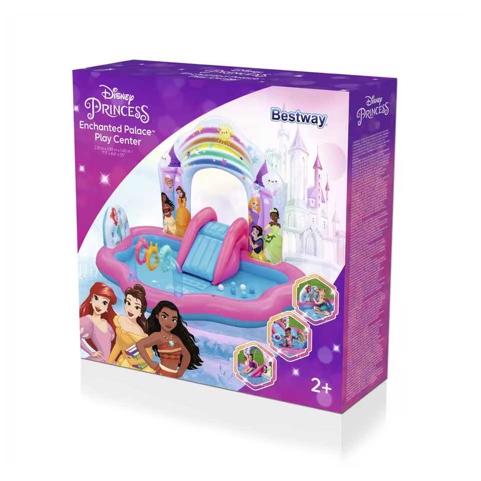 Este parque de juegos hinchable Bestway enamora a primera vista gracias a su encantadora temática de las princesas Disney, perfecta para cualquier peque amante del mundo mágico de Disney 👑. Con unas medidas de 221 x 193 x 140 cm, ofrece un espacio amplio para que varios niños puedan jugar cómodamente a la vez, compartiendo risas y diversión.