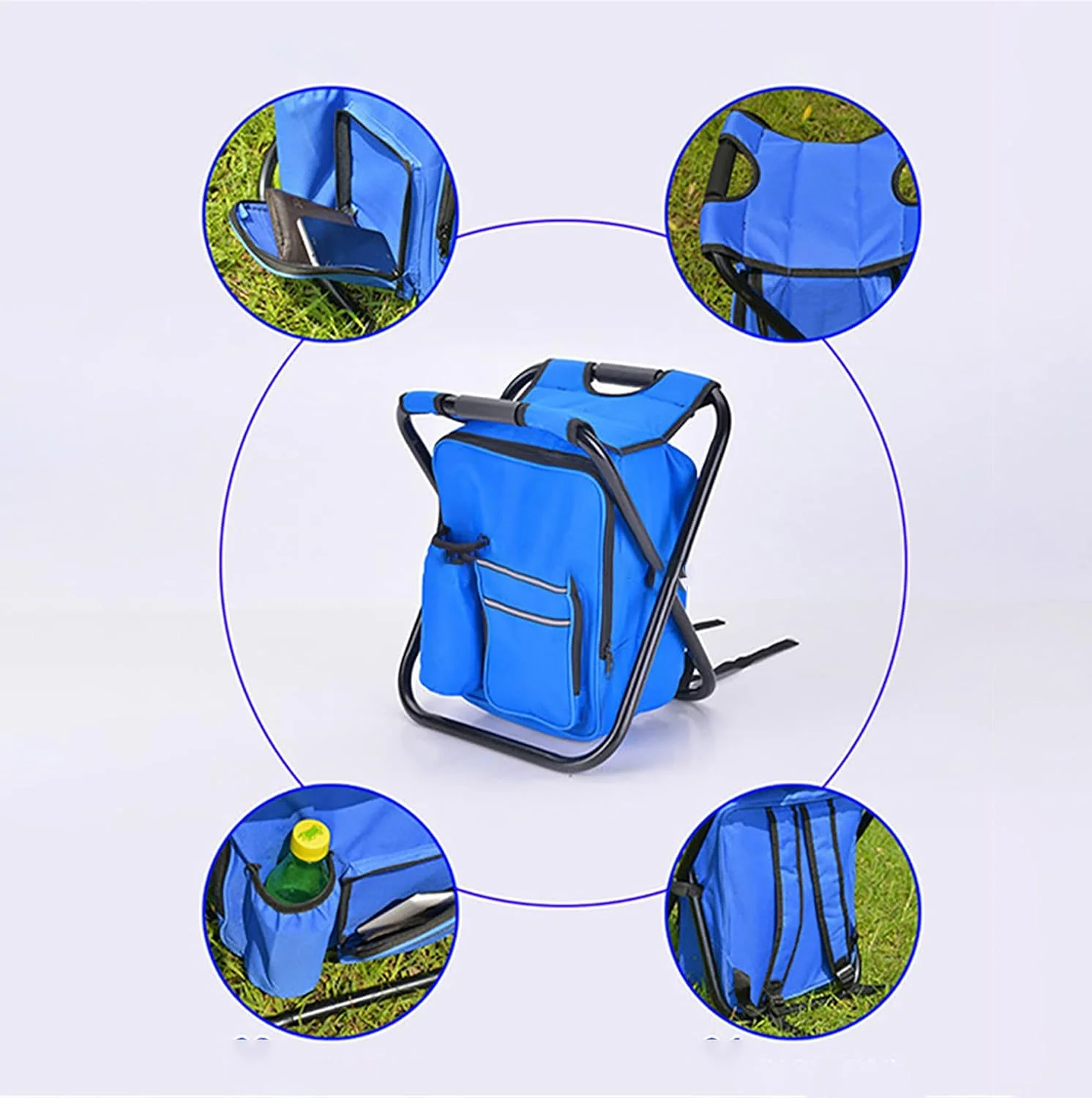 🎒 Esta mochila multifuncional destaca por integrar de forma práctica un asiento plegable y un compartimento refrigerante, ofreciendo una solución completa para disfrutar de actividades al aire libre con mayor comodidad. Su estructura está confeccionada en tela Oxford de doble capa con recubrimiento de PVC, lo que le otorga una alta resistencia al desgaste, protegiéndola de la humedad, el polvo y el envejecimiento, incluso con un uso frecuente y en condiciones cambiantes.