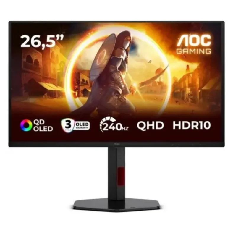 El AOC Q27G4ZDR integra un panel QD-OLED de 26,5 pulgadas con resolución QHD (2560 × 1440), una combinación equilibrada para escritorio que ofrece alta definición sin resultar excesiva en tamaño 🖥️. La tecnología QD-OLED permite negros muy profundos, transiciones de luz más precisas y una mejor separación entre sombras y zonas brillantes, lo que se aprecia tanto en juegos como en contenido audiovisual y multimedia.