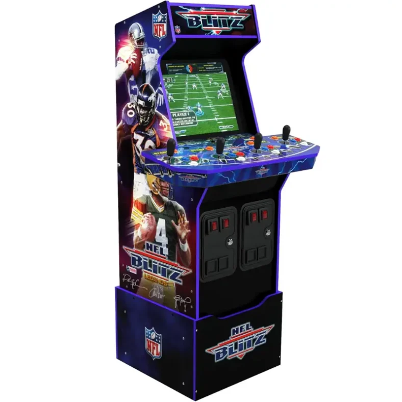 🏈 Más de 20 años después de su lanzamiento original, regresa la máquina arcade más popular de Arcade1Up: ¡NFL BLITZ! Sin necesidad de monedas ni fichas, revive la emoción del fútbol americano en su versión más nostálgica y emocionante. Su diseño atractivo y su espíritu arcade la convierten en una pieza imprescindible para los amantes del juego clásico.