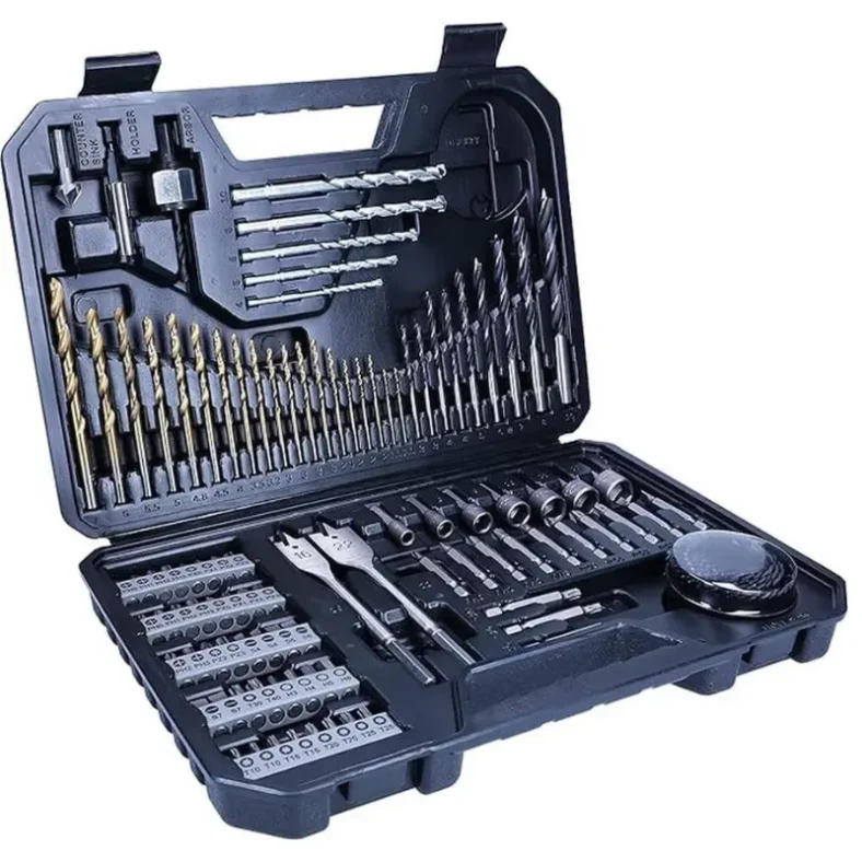 El set se completa con sierras de corona, brocas fresadoras planas, soporte universal, llaves de vaso y llave Allen, permitiendo afrontar una gran variedad de trabajos con facilidad. Es compatible con taladros manuales y estacionarios, con o sin cable, y las puntas sirven para cualquier atornillador eléctrico, lo que lo convierte en un conjunto muy práctico y versátil 💪🧰.