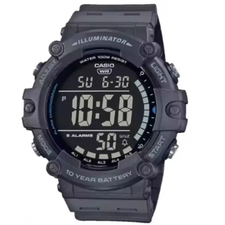 El Casio AE-1500WH-8BVEF es un reloj digital que combina funcionalidad y resistencia en un diseño pensado para el uso diario. Su estructura está fabricada en resina ligera y duradera, lo que lo hace cómodo de llevar y resistente a impactos. La caja, de 51.2 mm de diámetro y 15.7 mm de grosor, se acompaña de una correa de resina con cierre de hebilla que asegura un ajuste rápido y firme. La pantalla está protegida por un cristal acrílico que garantiza buena visibilidad.