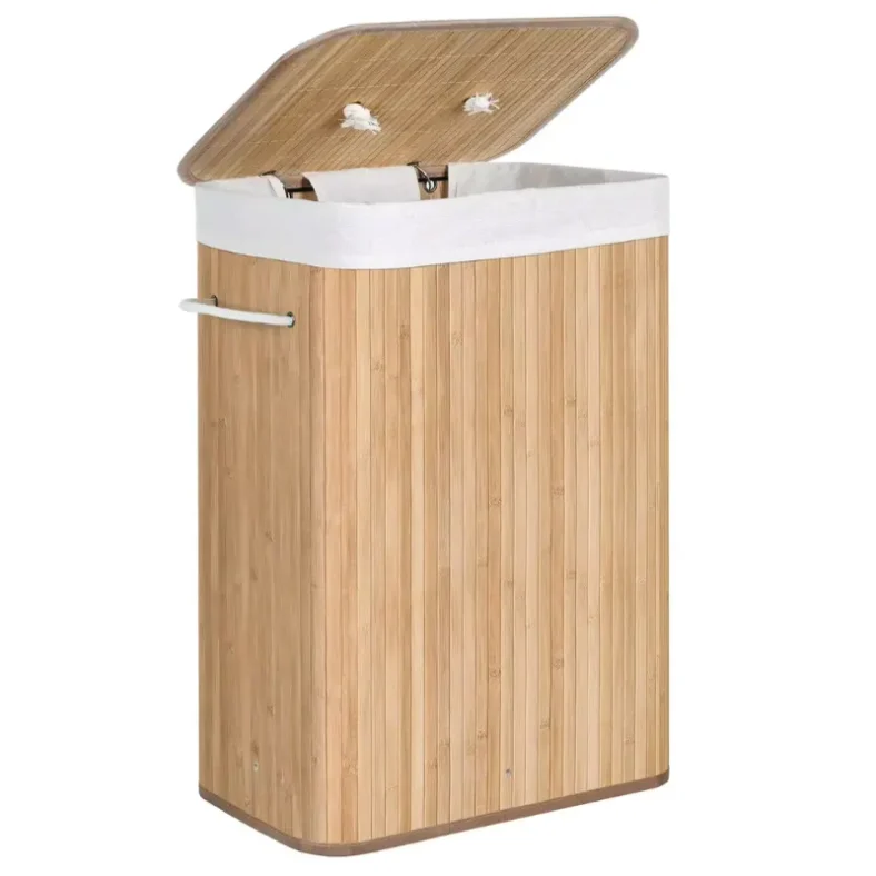 Su estructura exterior está hecha de bambú natural ensamblado en listones de 17 mm, lo que le da una construcción firme capaz de soportar hasta 10 kg de ropa sin deformarse. Mantiene una forma vertical impecable incluso cuando está lleno, y su acabado cálido combina fácilmente con distintos estilos decorativos. Además de resistente, resulta ligero y cómodo de mover en el día a día ✨.