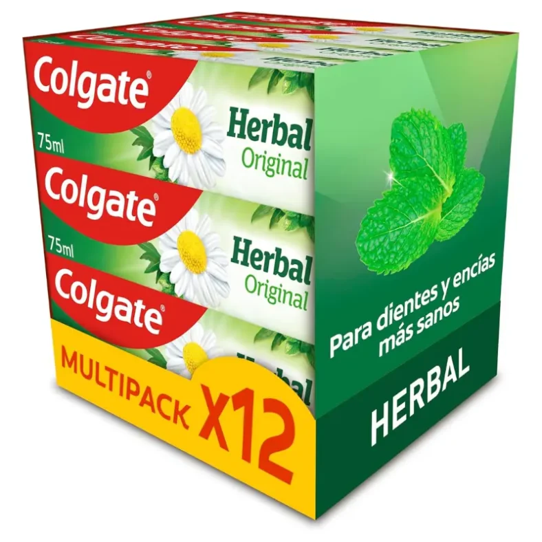 La pasta dentífrica Colgate Herbal con flúor se presenta en un práctico pack de 12 tubos de 75 ml, ideal para mantener una rutina de higiene bucal constante durante meses. Formulada para el uso diario, combina el respaldo científico de Colgate con ingredientes de inspiración vegetal, ofreciendo una limpieza completa que cuida tanto los dientes como las encías.