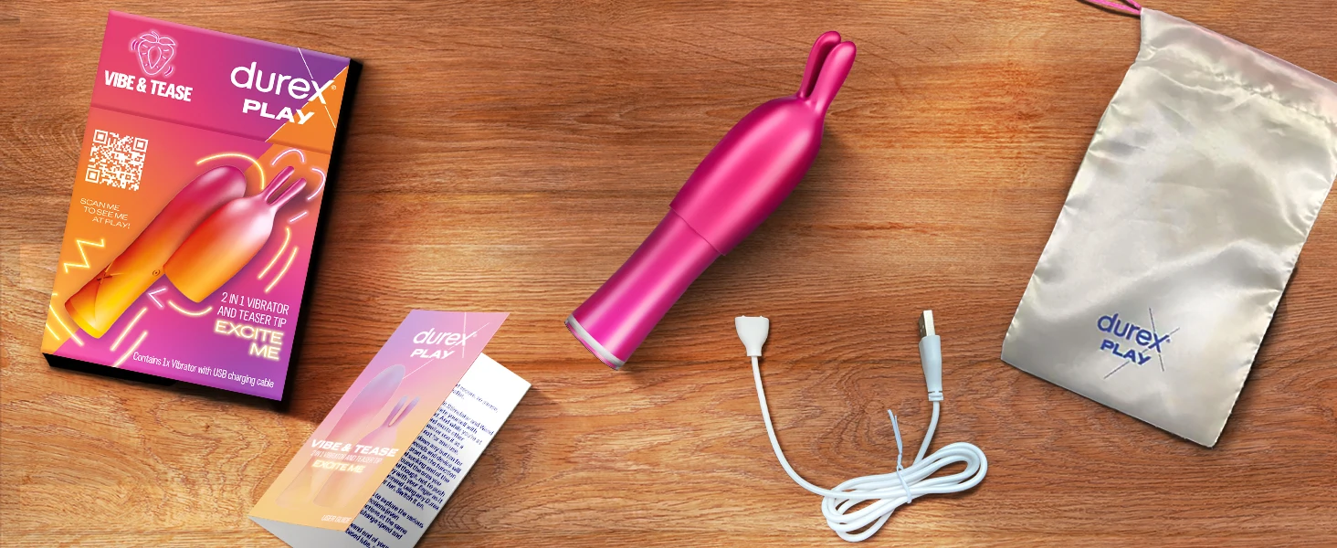 El Conejito Vibrador Durex VIBE & TEASE es el compañero perfecto para quienes buscan una estimulación placentera y versátil. Con sus 7 ajustes de vibración y una punta especialmente diseñada para una estimulación localizada, ofrece una experiencia adaptada a tus gustos y necesidades, brindando sensaciones intensas y personalizadas 🔥🐰.