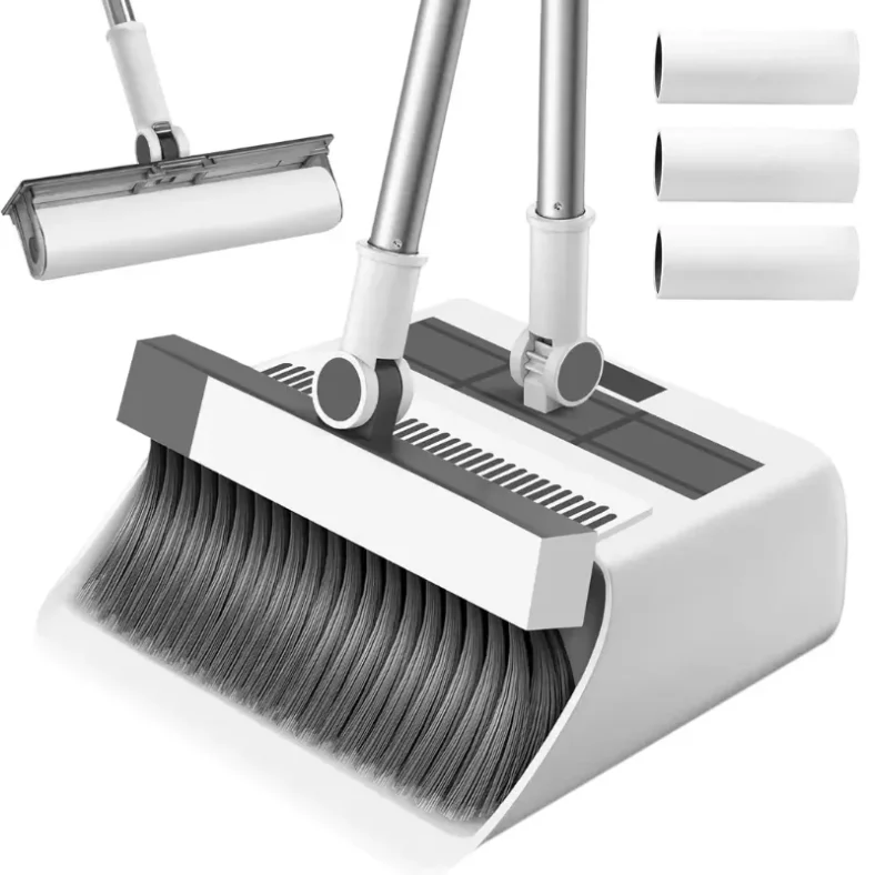 🧽 Recoge todo a la primera: el borde del recogedor sella con el suelo para evitar restos, y su peine integrado limpia las cerdas de la escoba rápidamente. 🌟 Versátil en todas las superficies: funciona en madera, baldosa, vinilo y laminado, con un mango telescópico de hasta 126 cm y rotación de 180°, adaptándose a cada espacio y necesidad.