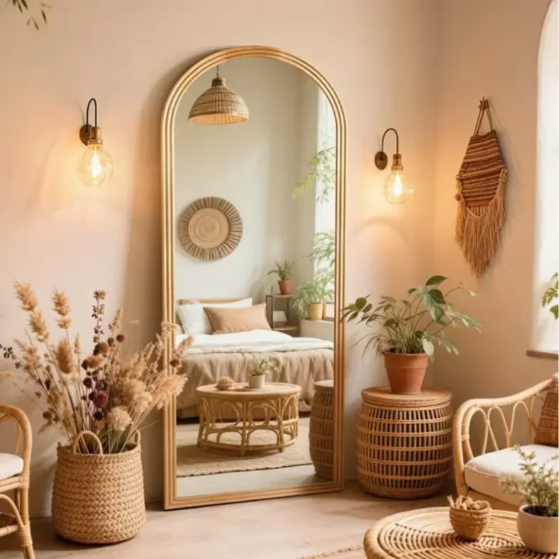 Este espejo de pie arco 160×50 cm de madera maciza transforma cualquier espacio con su elegancia natural 😍. Su diseño arqueado aporta un toque vintage y sofisticado, mientras que la madera maciza exhibe vetas auténticas que hacen de cada pieza algo único. No es solo un espejo: es un elemento decorativo que eleva al instante dormitorios, salas o vestidores con un estilo cálido y refinado.
