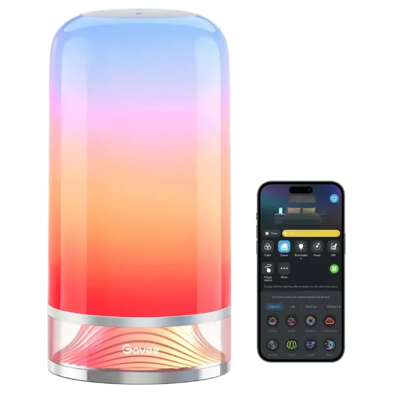 La lámpara de mesita de noche Govee te ofrece una experiencia de iluminación totalmente personalizable con su función de creación DIY, que te permite dibujar y aplicar tus propios patrones de color desde la app, ¡perfecto para darle un toque único y divertido a tu espacio!