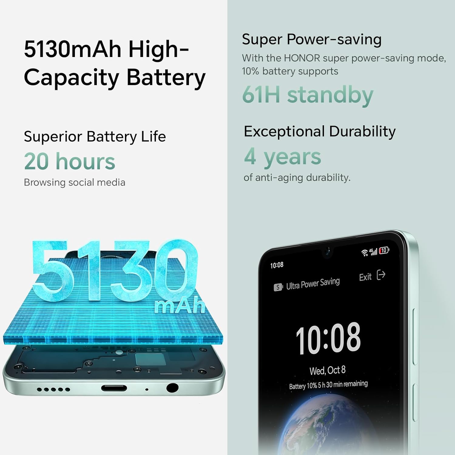 El HONOR X5c Plus destaca por su cámara principal ultra nítida de 50 MP, acompañada de un sensor de profundidad de 8 MP y compatible con IA, grabación en 4K y modo nocturno mejorado, permitiendo capturar retratos, paisajes o macros con gran detalle 📸. En condiciones de poca luz, el rendimiento mejora hasta un 40%, ofreciendo imágenes más limpias y definidas sin necesidad de equipo adicional.