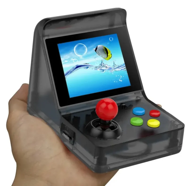Su diseño compacto, ligero y moderno en negro translúcido la convierte en una opción ideal para llevar a cualquier parte. Puedes conectar dos unidades y jugar en modo doble, perfecto para competir con amigos o familiares. Además, su capacidad de almacenamiento de 512 MB y el soporte para múltiples formatos de vídeo e imagen amplían sus posibilidades más allá del juego. ¡Una joya para los fans del arcade retro! ✨