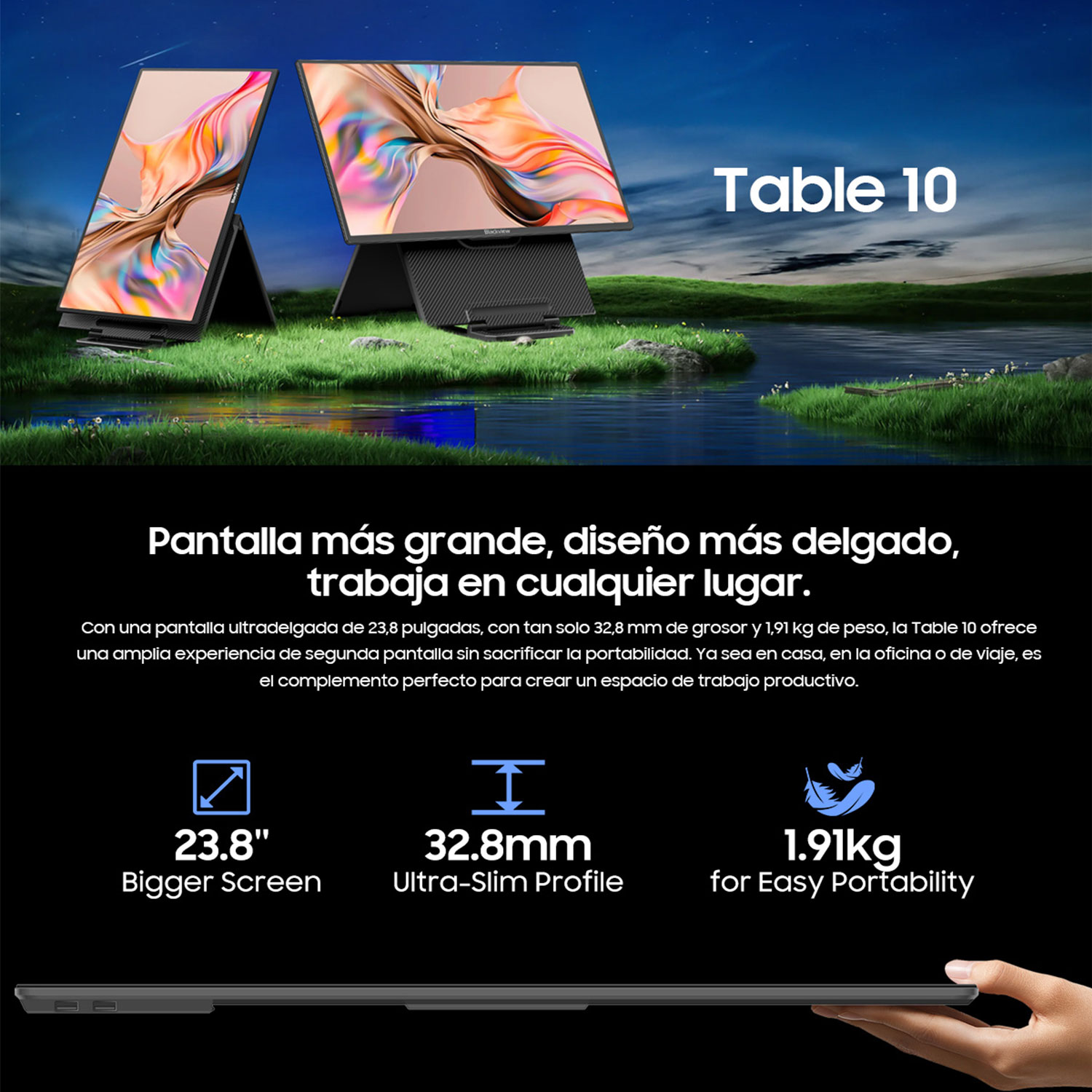 Descubre una nueva forma de trabajar y disfrutar del contenido con el Blackview Table 10, un monitor de 23,8” FullHD con panel IPS que ofrece 100 % de color sRGB y ángulos de visión de 178° para imágenes nítidas y realistas desde cualquier posición. Su tasa de refresco de 100 Hz aporta una experiencia más fluida al jugar, editar vídeo o realizar varias tareas a la vez, mientras que el modo de cuidado ocular TÜV ayuda a reducir la fatiga visual durante largas jornadas frente a la pantalla. 🎮💻
