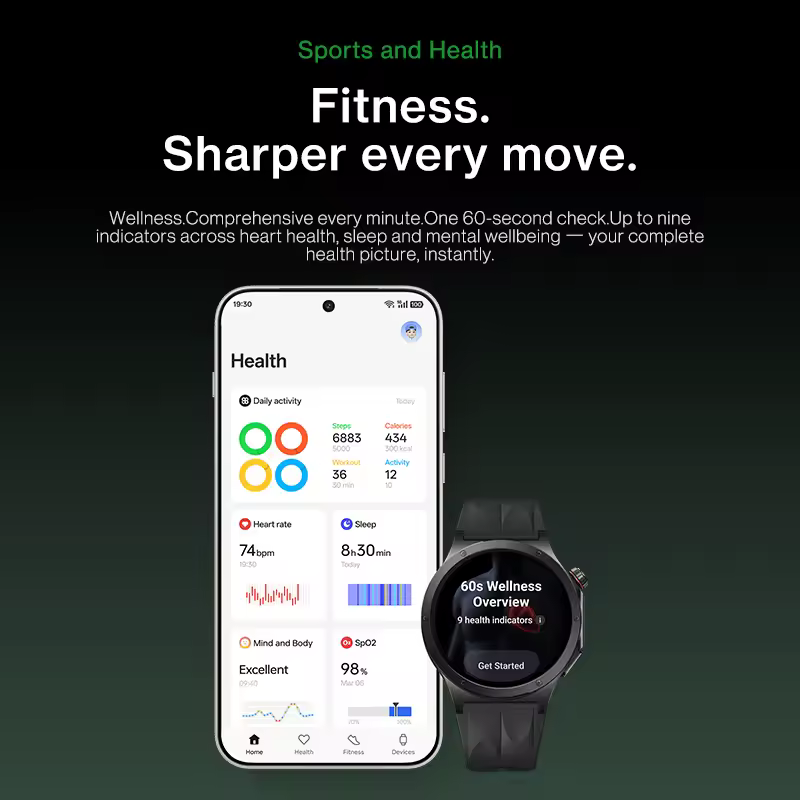 En cuanto a salud, incorpora un sistema avanzado de sensores 🫀 con monitor óptico de frecuencia cardíaca de 8 canales (HRV), medición de SpO2, temperatura cutánea y soporte para ECG. Esto permite un seguimiento detallado del estado físico, incluyendo métricas de recuperación y fatiga, algo especialmente útil para usuarios activos.