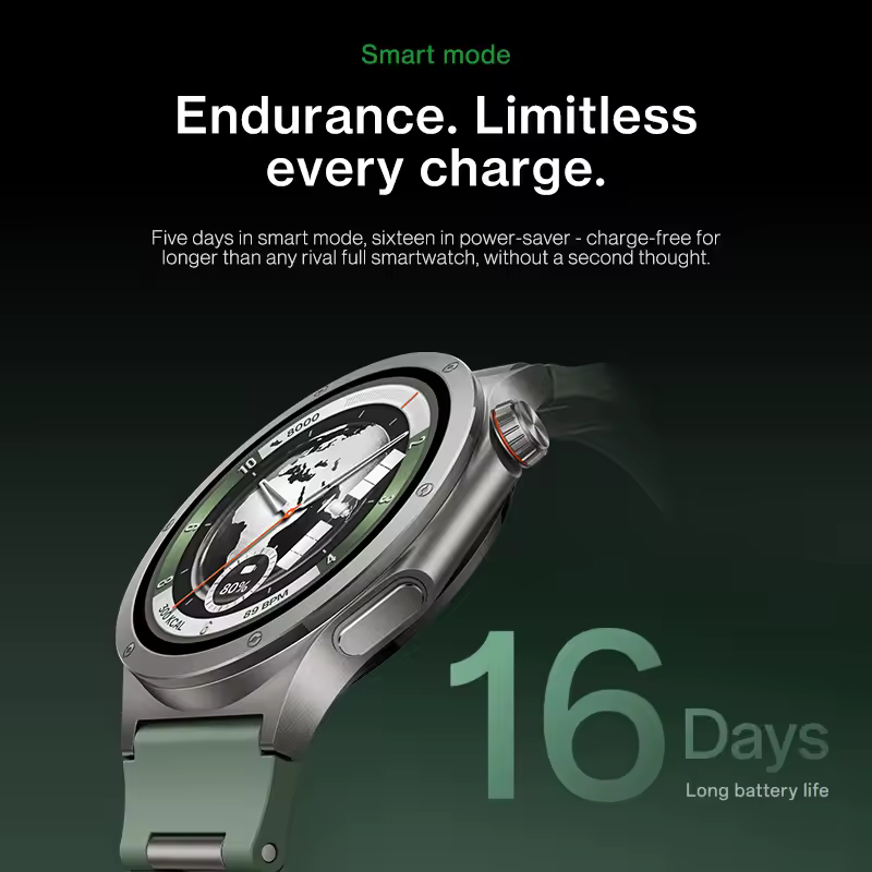 Uno de sus puntos más fuertes es la batería 🔋, con una capacidad de 646 mAh que permite alcanzar hasta 100 horas de uso en modo inteligente bajo Wear OS. En escenarios más intensivos, se mantiene entre 48 y 60 horas, mientras que el modo ahorro puede alargar la autonomía hasta 15 días. La carga rápida VOOC de 10W completa el 100% en apenas 55 minutos, algo muy práctico para el día a día.