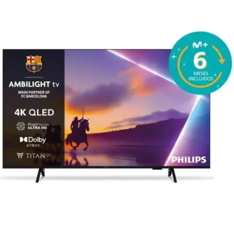 🖤 De diseño minimalista europeo, con bisel metálico negro y soporte robusto, esta Philips QLED 65” es perfecta para montaje mural o sobremesa profesional. Descubre por qué los expertos eligen Philips Ambilight: calidad superior, experiencia cinemática y máxima conectividad. 🚀