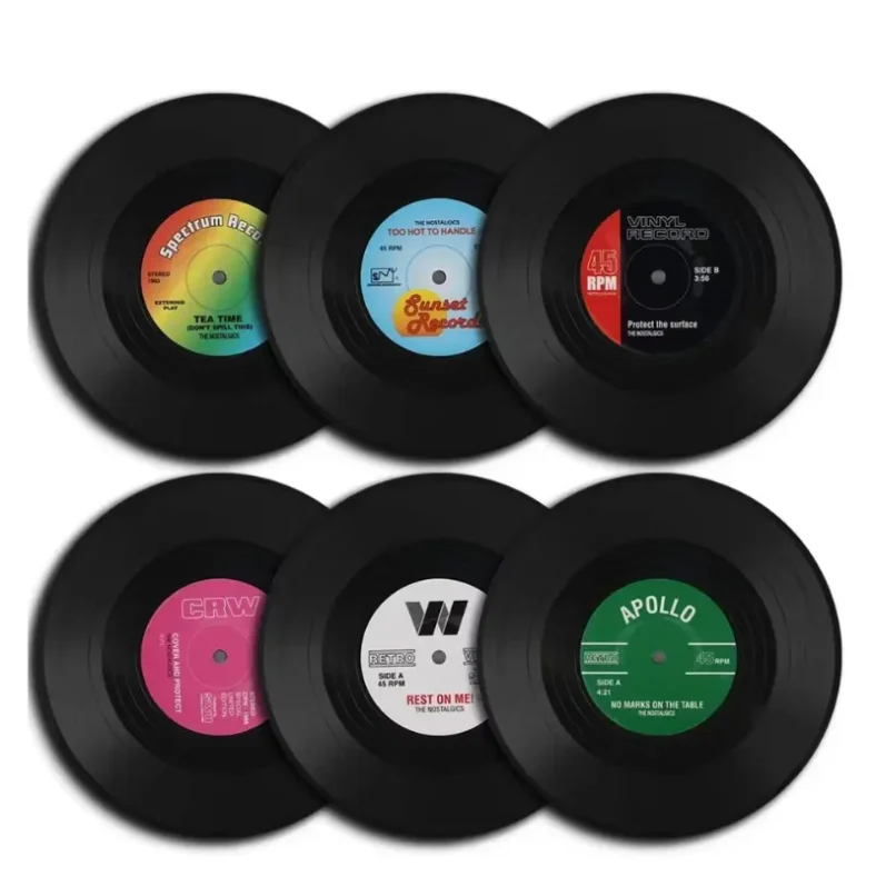 Llega el pack de 6 posavasos con diseño de discos de vinilo, perfectos para darle un toque retro y original a tu mesa 🎶🥤. Ideales para amantes de la música o para sorprender a tus invitados con un detalle único y diferente.