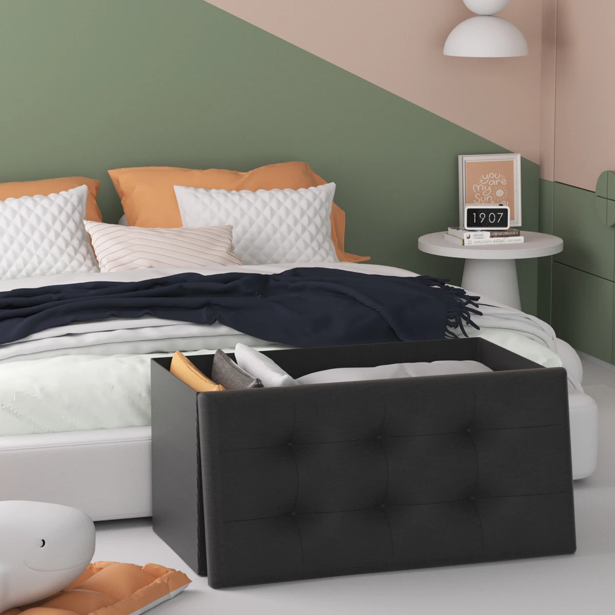 🪑 Este puff de almacenamiento plegable combina estilo, resistencia y funcionalidad en un solo mueble. Está acabado en una elegante tela con apariencia de lino y costuras finas, con protecciones metálicas en las esquinas que refuerzan la tapa. Su estructura de tableros de MDF gruesos permite una capacidad de carga estática de hasta 300 kg, lo que lo convierte en un asiento seguro y duradero. Además, su interior está relleno con espuma de alta densidad, brindando un asiento suave, cómodo y transpirable para tu descanso diario.