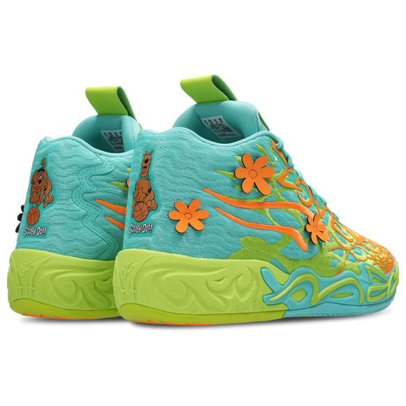 Los acabados se completan con los logotipos de LaMelo en la lengüeta y PUMA distribuidos a lo largo del diseño, reforzando su identidad visual. Todo el conjunto hace referencia a temas de ciencia ficción y cultura animada, con claras alusiones a Scooby-Doo y la Máquina del Misterio 🐾🚌. Desde los materiales hasta los gráficos, cada detalle está pensado para ofrecer un producto que destaque tanto en la cancha como fuera de ella, combinando rendimiento y estilo con un sello único.
