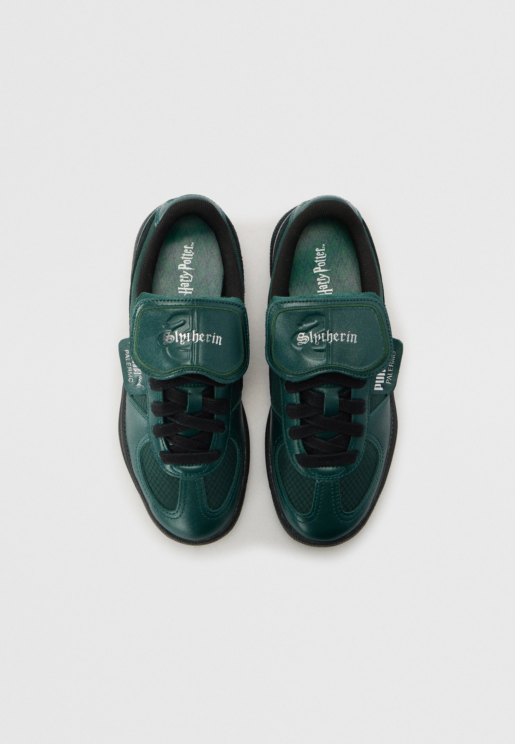 Basadas en el diseño original Palermo de los años 80, mantienen la silueta retro con puntera en T y la icónica suela de goma, que aporta tracción y durabilidad. La parte superior combina gamuza, cuero y materiales sintéticos, creando un juego de texturas visualmente atractivo y resistente. Con los colores emblemáticos de Slytherin y el logotipo de PUMA en el panel lateral, estas zapatillas destacan en cualquier look urbano, fusionando comodidad, nostalgia y magia en cada paso ✨.