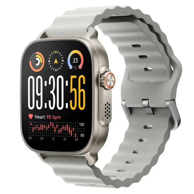 El Realme Watch 5 destaca por su pantalla AMOLED de 1,97″ con resolución 390×450, brillo de 600 nits y tasa de refresco de 60 Hz, ofreciendo una experiencia visual clara y fluida 🌟. Su diseño con relación pantalla-cuerpo superior al 79% permite visualizar información de manera amplia y cómoda, perfecta para el uso diario y actividades deportivas.
