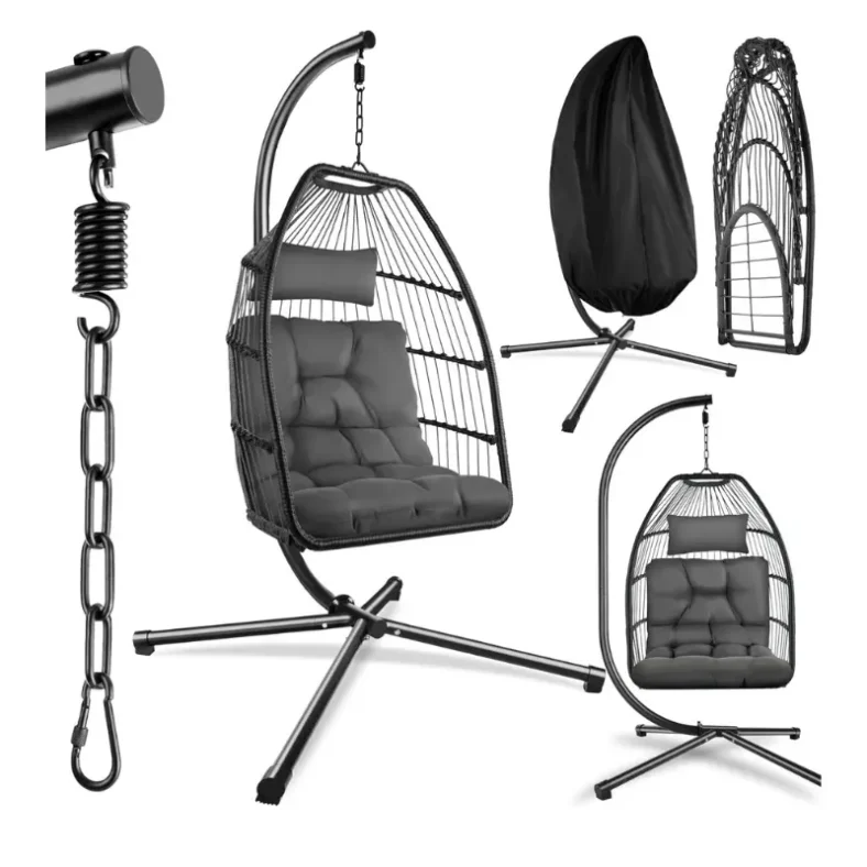 Gracias a su altura ajustable y balanceo suave 🔄, puedes adaptarla fácilmente a tu posición preferida, mientras que sus cojines desmontables facilitan la limpieza y el mantenimiento. Una opción práctica, elegante y perfecta para crear un ambiente relajado en cualquier espacio.