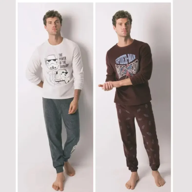 Disponible en tallas desde S hasta 3XL, el conjunto se completa con unos pantalones largos en color gris melange, que ofrecen óptima libertad de movimiento para que puedas dormir cómodamente durante toda la noche.