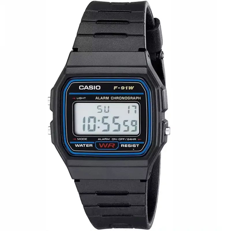 El Casio F-91W no solo muestra la hora; en su pantalla digital también ofrece funciones de alarma, cronógrafo, calendario automático y formatos de 12 o 24 horas. Además, su construcción duradera le permite resistir el agua hasta 1 bar, así que puedes lavarte las manos sin preocuparte por quitártelo.