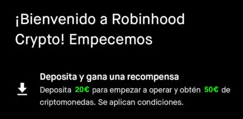 - ¡YA ESTÁ! Recibes tus 50€ gratis en criptomonedas: Estos 50€ de regalo en criptomonedas se reciben en el mismo momento que llega el depósito a nuestra cuenta de Robinhood Crypto.