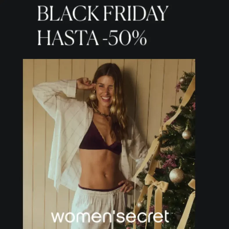 Hasta el 30 de noviembre en el Black Friday Women Secret encontrarás una gran variedad de productos con descuentos de hasta el 50%. Sujetadores, pijamas, bragas, complementos… ¡a los precios más bajos del año!
